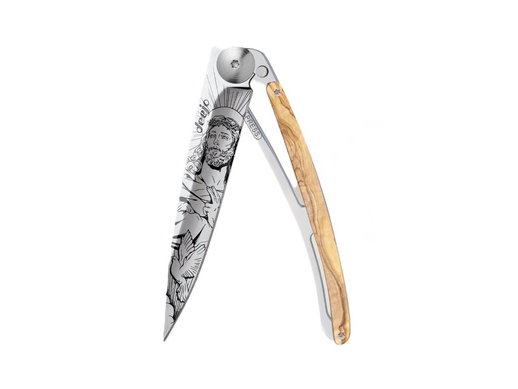 Kapesní nůž Deejo 1AB110 Tattoo Mirror 37g olive wood Jesus