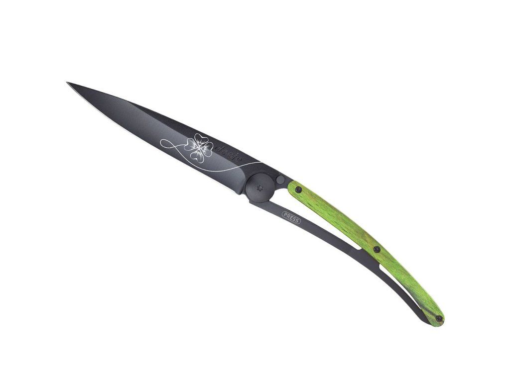 Kapesní nůž Deejo 1GB160 Tattoo Black 37g green beech Lucky Charm