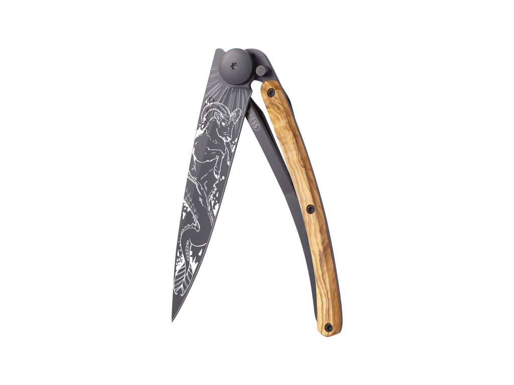Kapesní nůž Deejo 1GB179 Tattoo Black 37g olive wood Capricorn