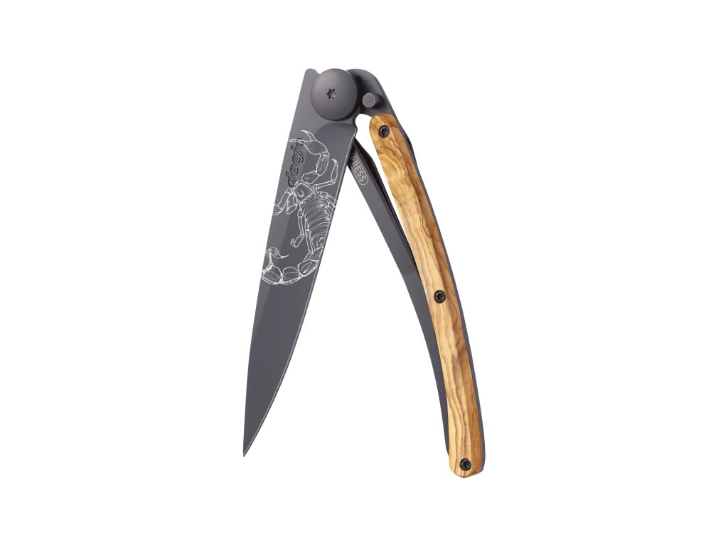 Kapesní nůž Deejo 1GB184 Tattoo Black 37g olive wood Scorpio