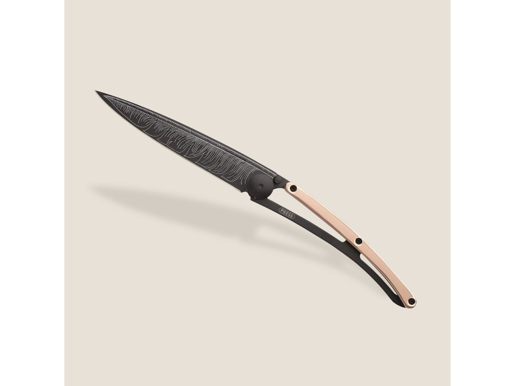 Kapesní nůž Deejo 1GM025 GOLD Tattoo Black 37g 18kt pink gold Feather