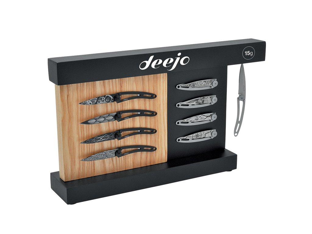 Elegantní stojan pro prezentaci 9 kusů nožů Deejo ve verzi 15gramm.