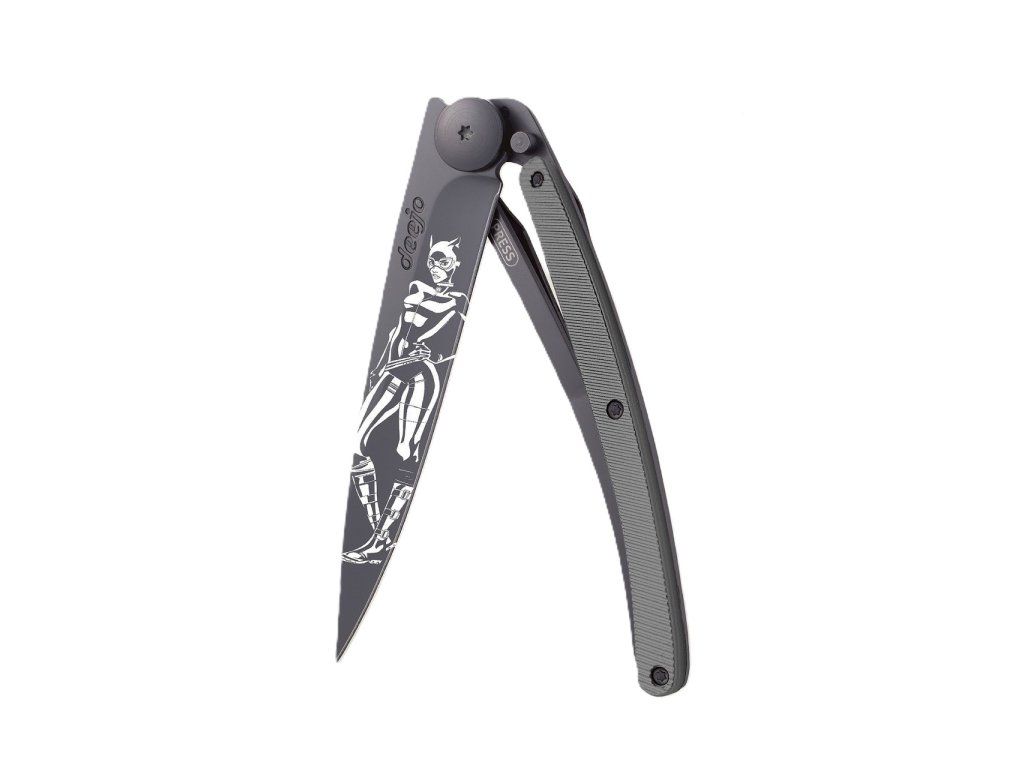 Kapesní nůž Deejo DEEWRN007 Tattoo Black 37g aluminium dark grey Catwoman