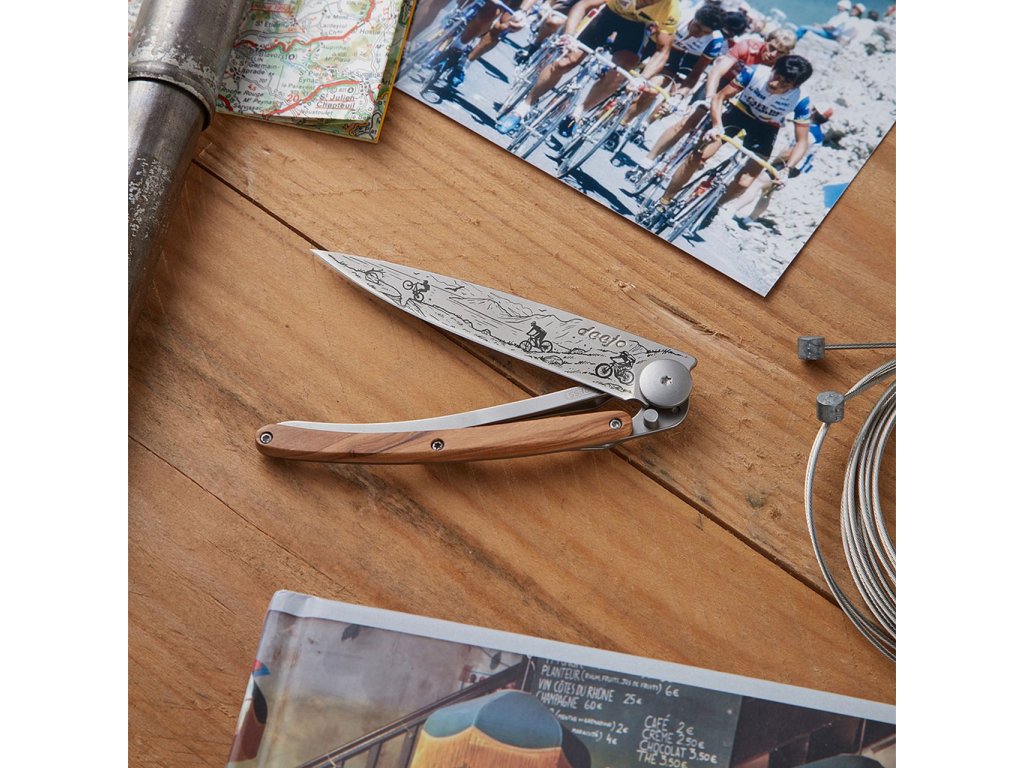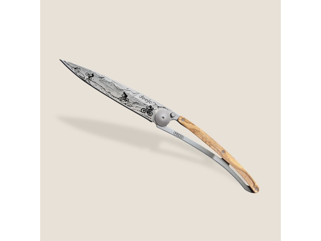 Kapesní nůž Deejo 1CB110 Tattoo 37 g olive wood Mountain Bike je elegantní, ultralehký nůž, který si díky svému jedinečnému designu zamiluje každý cyklistický nadšenec i milovník minimalismu. Francouzská značka Deejo povýšila klasický kapesní nůž na stylový doplněk, který v kapse ani neucítíte, ale kdykoliv ho otevřete, spolehlivě odvede svou práci a navíc skvěle vypadá.