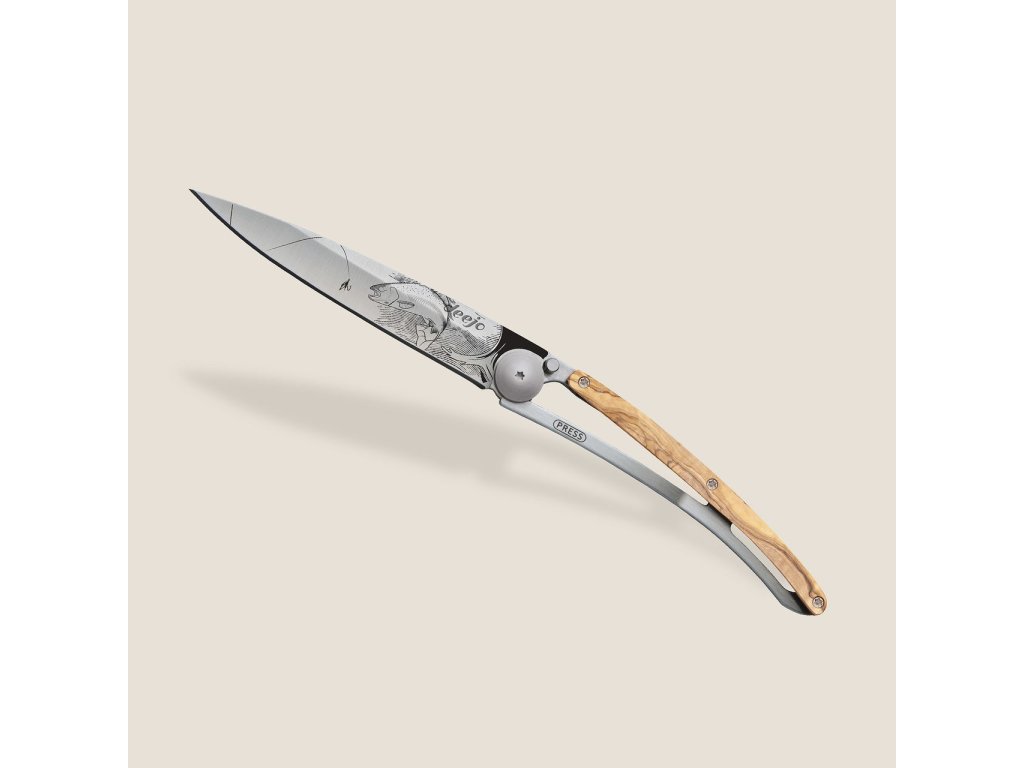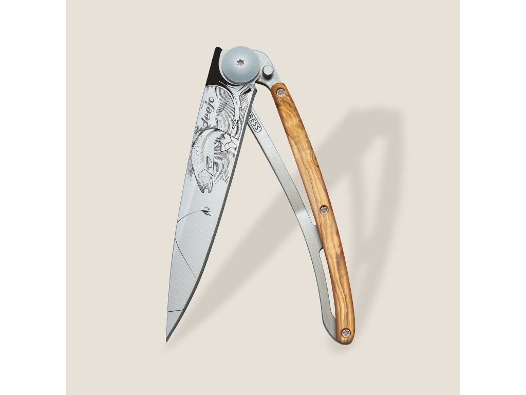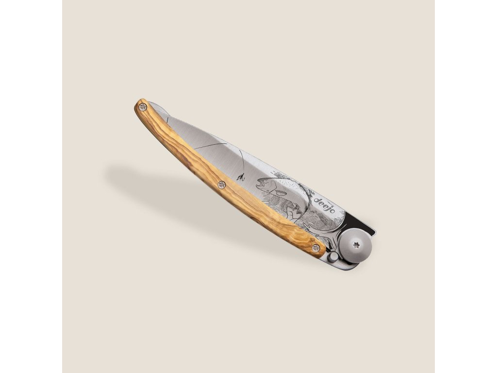 Kapesní nůž Deejo 1CB116 Tattoo 37g olive wood Trout