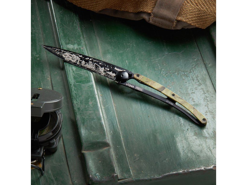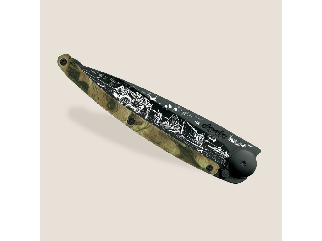 Kapesní nůž Deejo 1GM042 Tattoo Black 37g army camo D-Day limitovaná edice