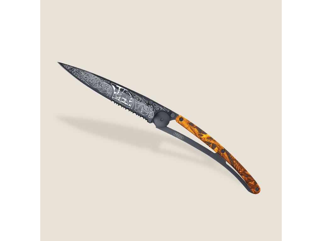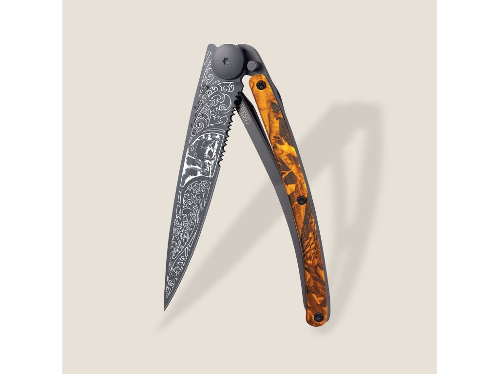 Kapesní nůž Deejo 1GM501 Tattoo Serration Black 37g orange camo Wild Boar