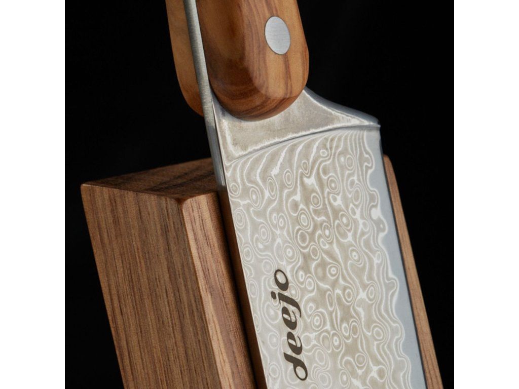 - Nůž nikdy nepatří do myčky na nádobí, agresivní chemie a horká voda by nenávratně poškodily olivové dřevo i strukturu damašku.