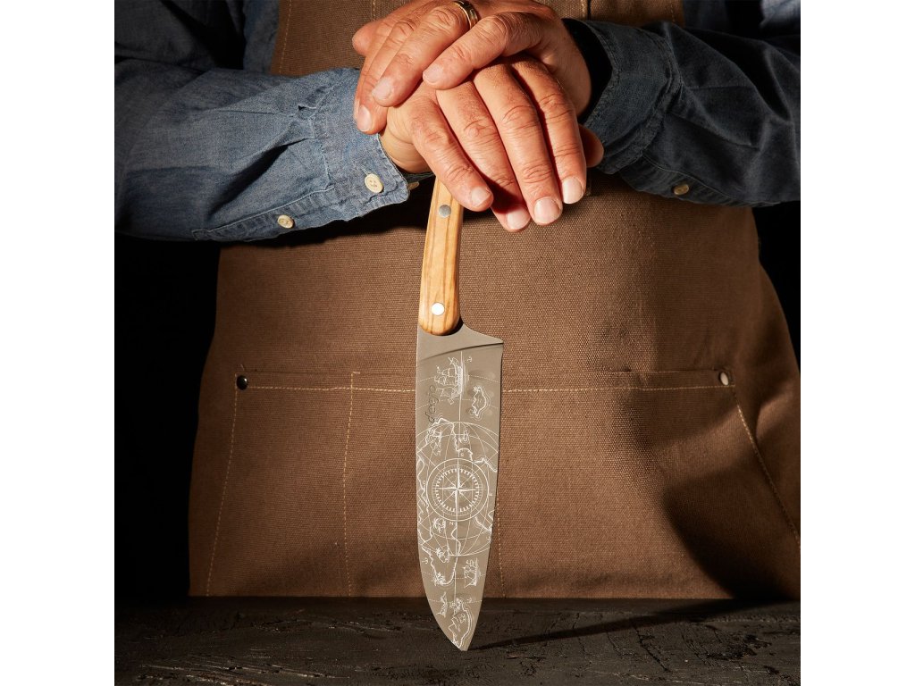 - Střenka z olivového dřeva: rukojeť je obložena masivním, pevně nýtovaným olivovým dřevem. Olivovník je vysoce ceněn pro své přirozené antibakteriální vlastnosti, mechanickou odolnost a překrásnou, hřejivou texturu s medovými odstíny. Díky kresbě dřeva je každý nůž naprostým unikátem.