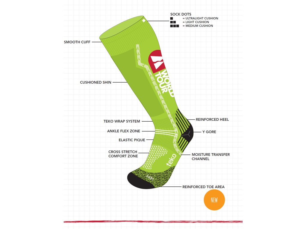 Škála ponožek TEKO pokrývá několik hlavních skupin - ponožky pro běh a cyklistiku, kde je kladen důraz na rychlé schnutí, nízkou hmotnost a minimalizaci odřenin, druhou skupinou jsou ponožky pro turistiku s důrazem na měkkost došlapu, omezení vzniku zápachu od nohou a komfort i při propocení a třetí skupinou jsou lyžařské ponožky se zvýšenou konstrukcí, speciálně vypolstrovanými otlakovými zónami a důrazem na tepelný komfort.