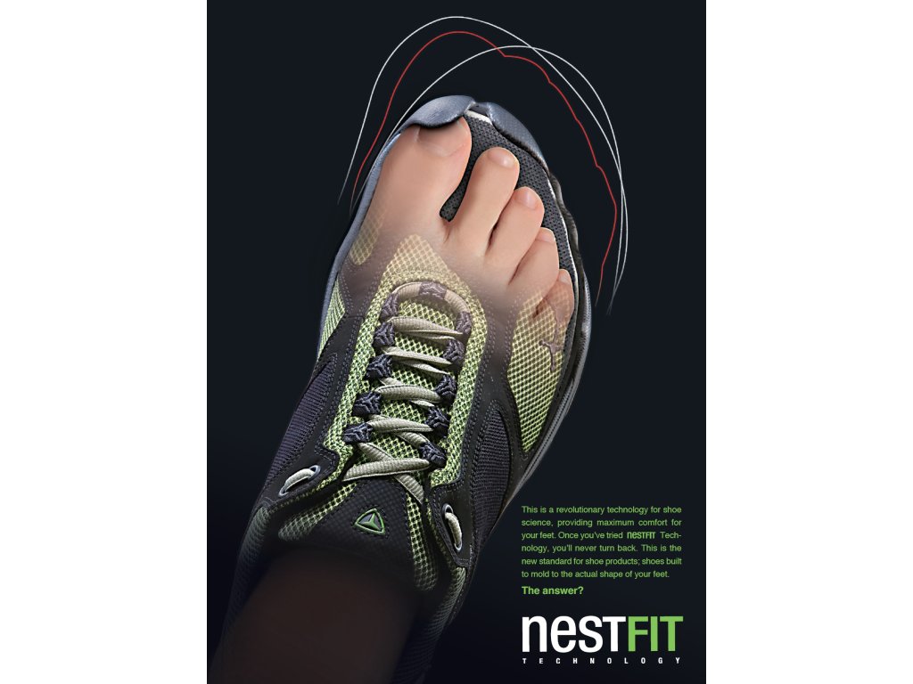 - dokonalé přizpůsobení: na rozdíl od běžné obuvi, kde se noze přizpůsobuje často jen vložka, NestFIT® propojuje tvar kopyta, stélky, mezipodešve i podešve. Všechny tyto vrstvy přesně kopírují křivky chodidla a prstů.