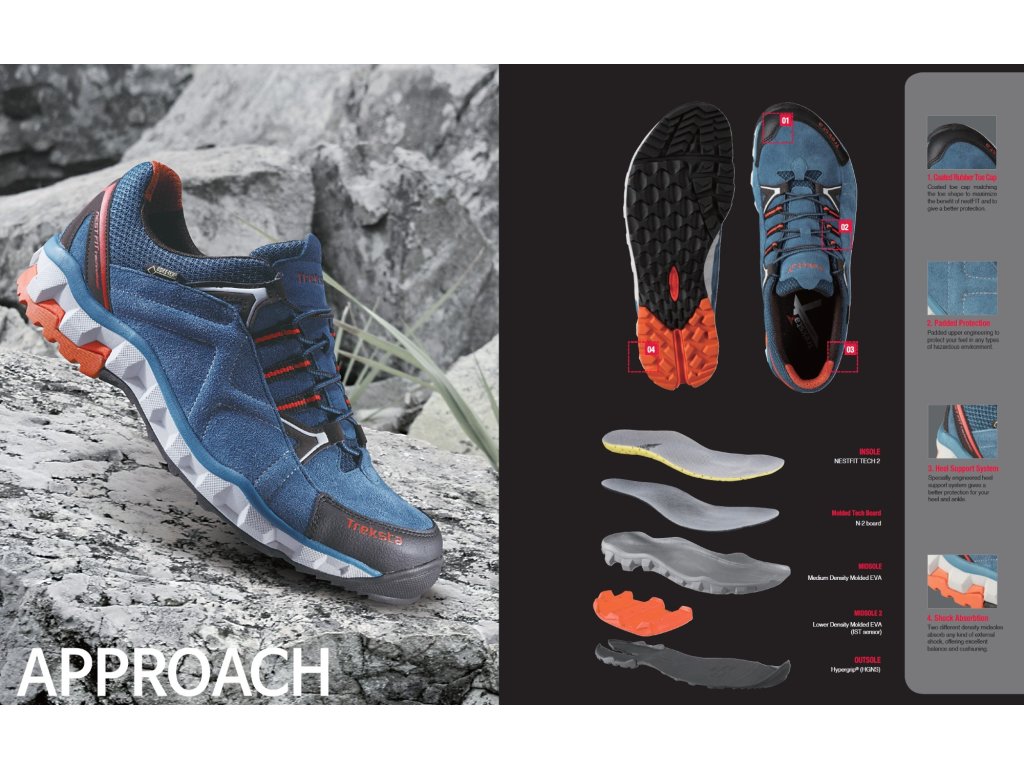 - Ochrana a odolnost: Špička i pata jsou vyztuženy pro ochranu proti okopání v kamenitém terénu, zatímco svršek z kombinace textilie a syntetiky zajišťuje lehkost a odolnost.